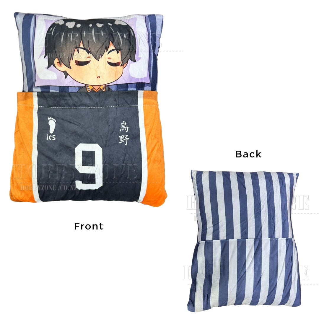 The genius setter of Karasuno! This ultra-soft velvet cushion features Kageyama Tobio in an adorable sleeping pose. Flip the reversible design to easily switch between a cuddly plush and a comfy cushion. Perfect for relaxing, traveling, or adding a cozy Haikyuu!! touch to your room. A must-have collectible for every Kageyama fan!